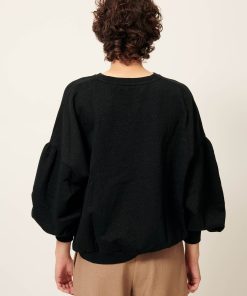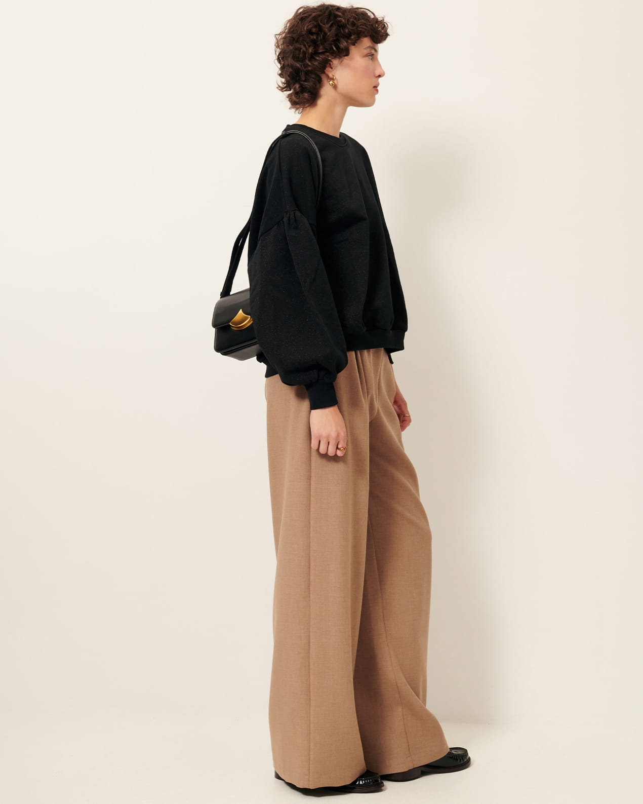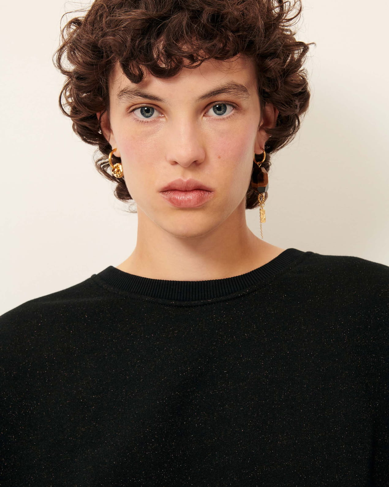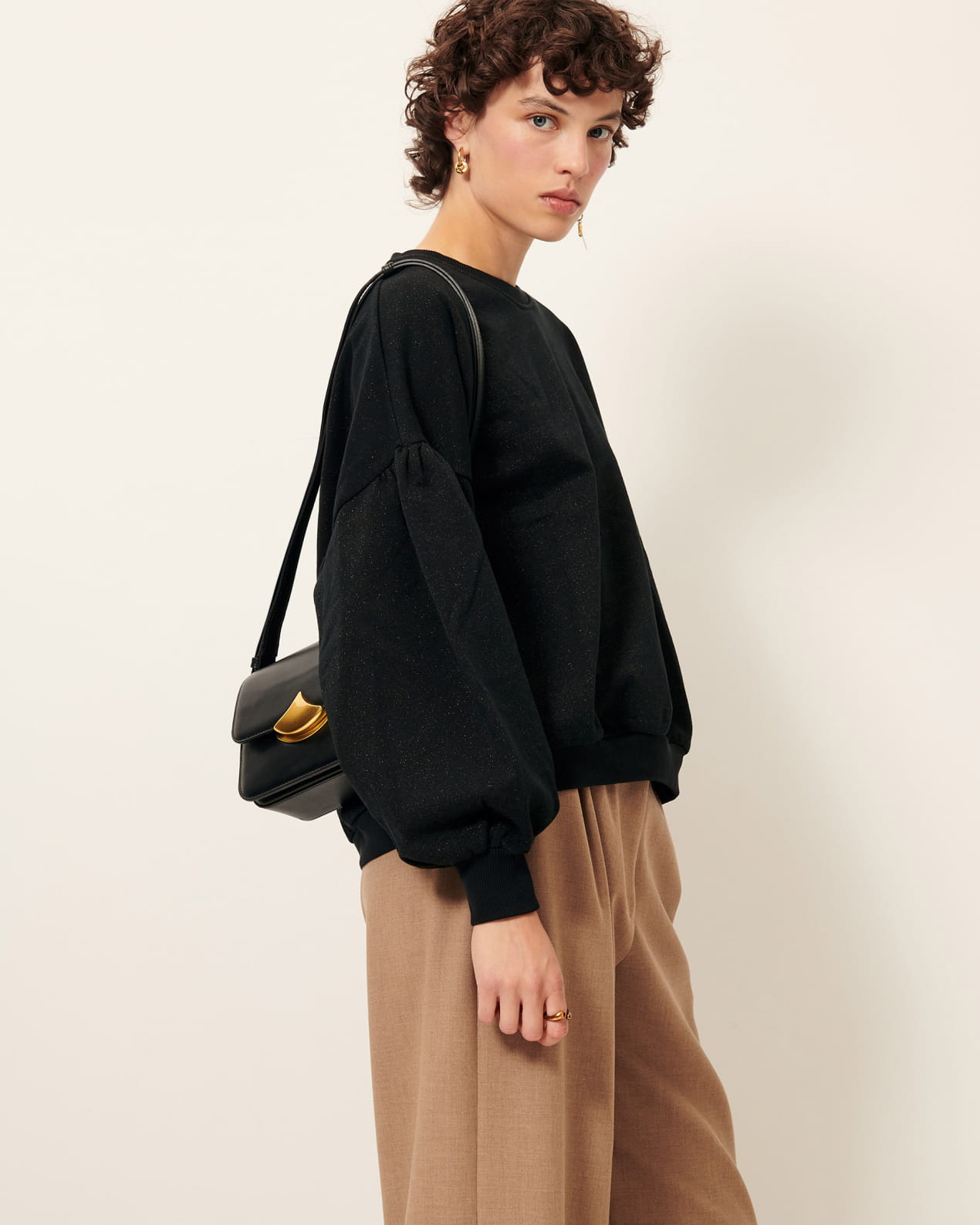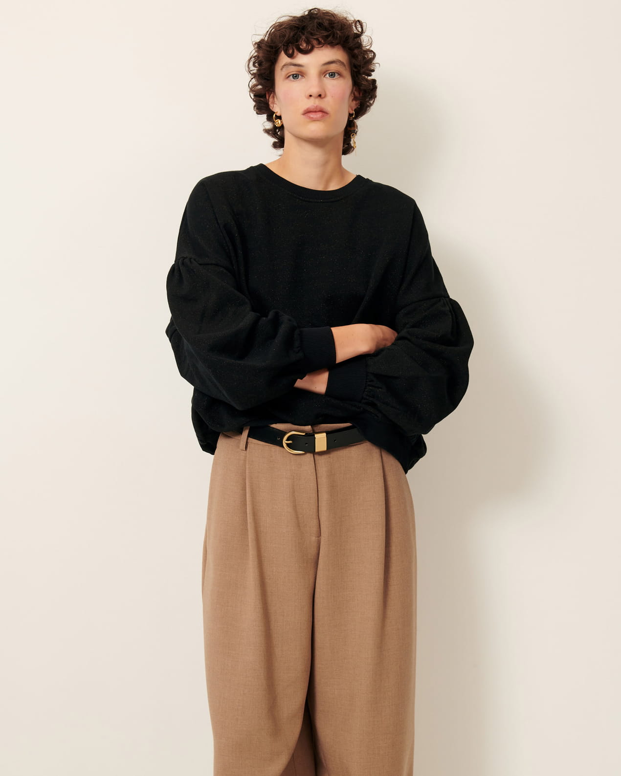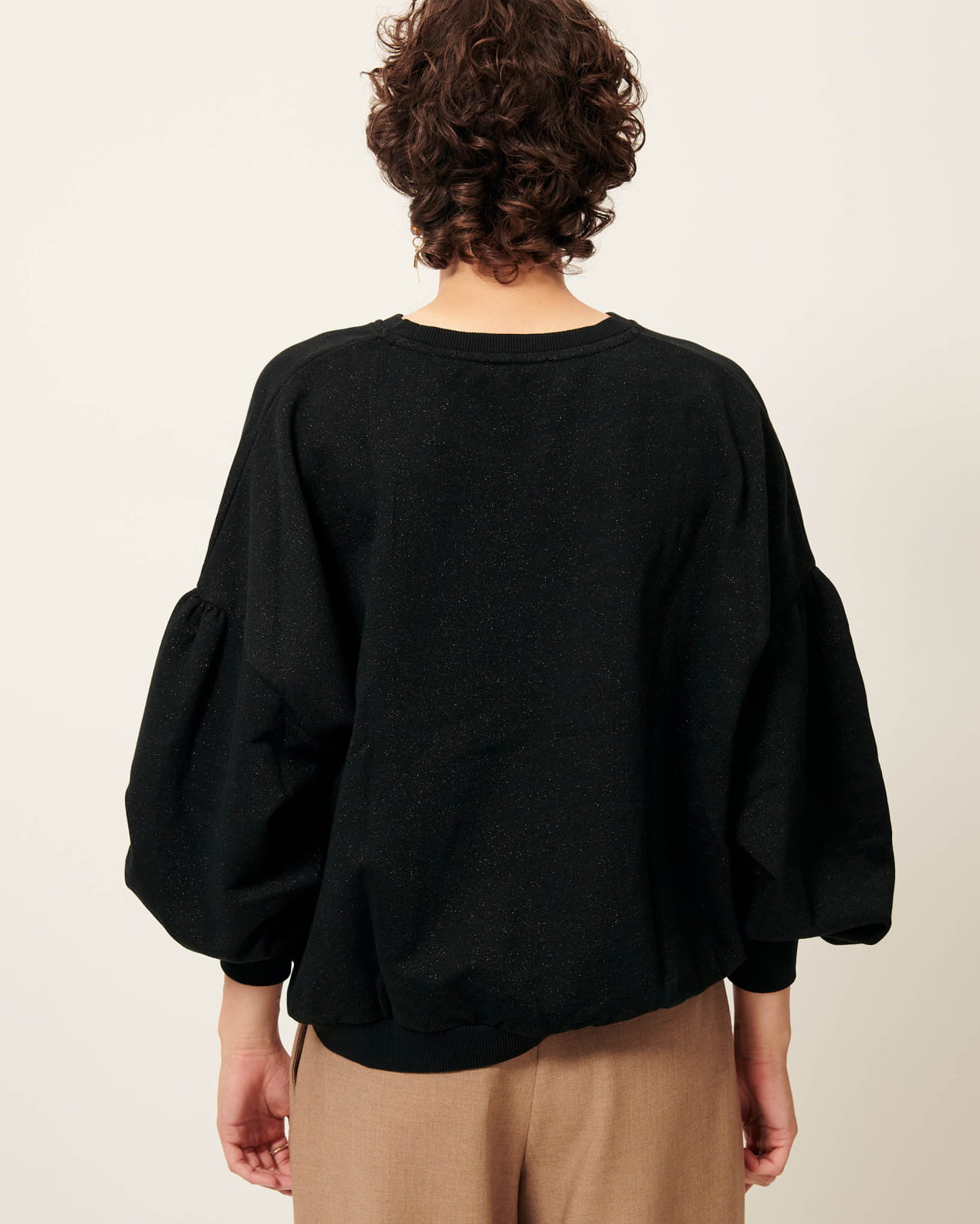 Balloon sleeve sweatshirt in metallic fleece, made in Portugal.